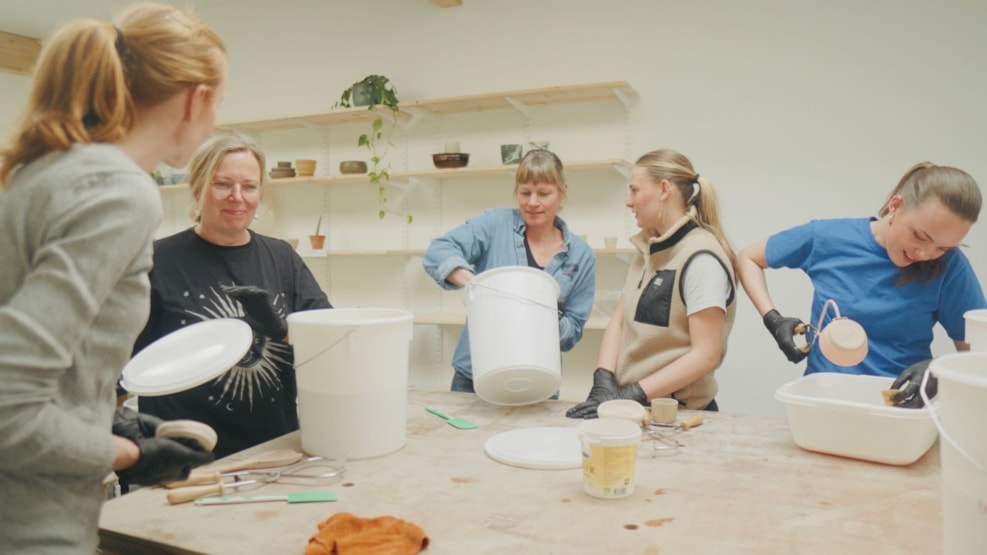Ler58 er også et kreativt værksted. Du kan købe klippekort til selvstændigt arbejde, blive medlem for fri adgang eller tage et intensivt drejekursus over tre dage med små hold og sparring. Her lærer du at forme, trimme og glasere dine egne stykker, mens roen sænker sig, og hænderne tager over.